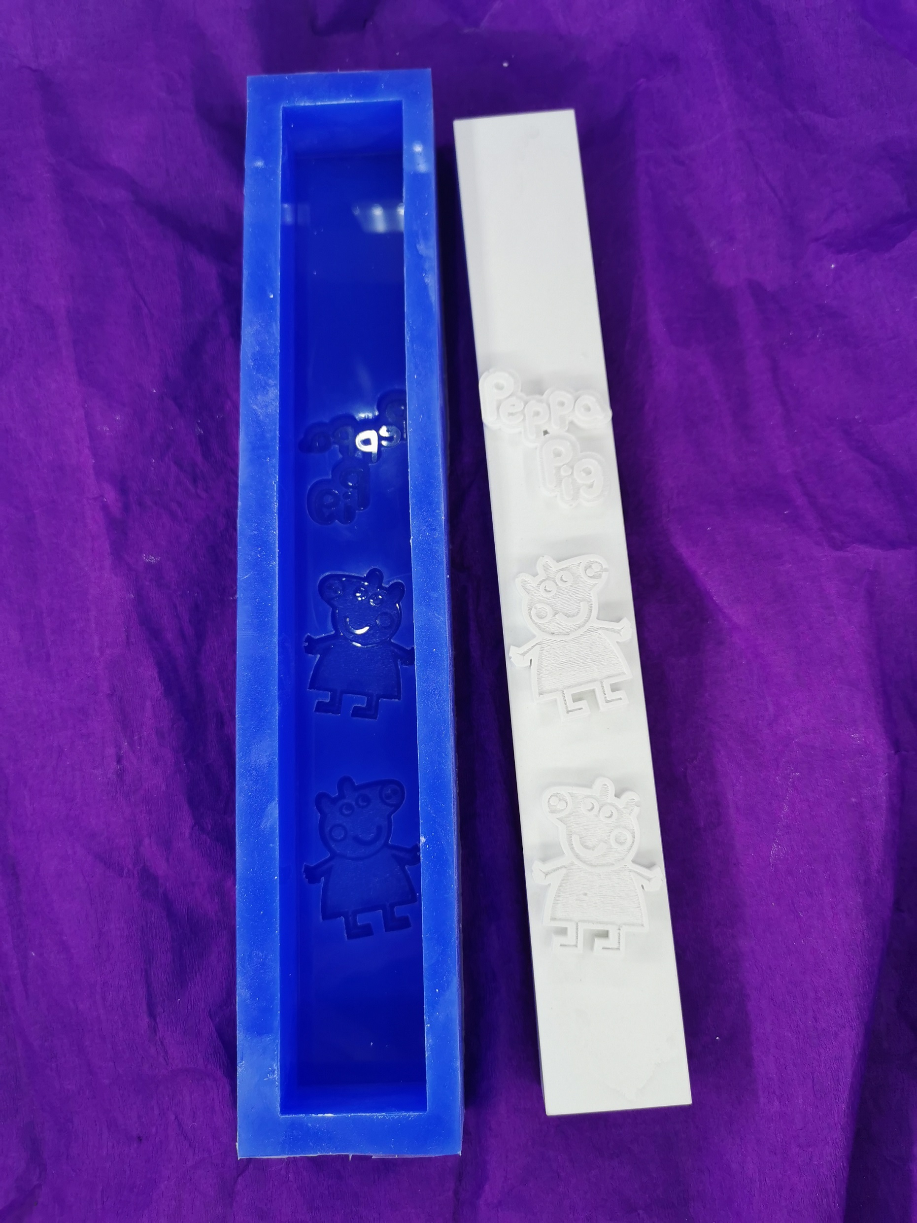 Χειροποίητο καλούπι σιλικόνης υψηλής ποιότητας με τριπλό αποτύπωμα του αγαπημένου παιδικού χαρακτήρα Bluey και το λογότυπο.